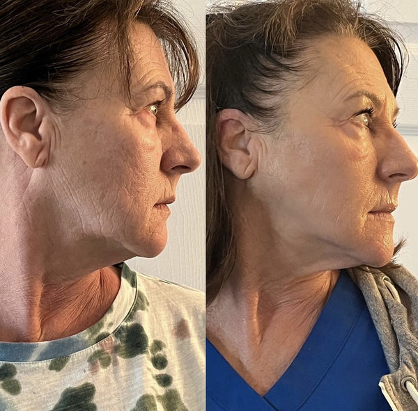- Tightens neck skin